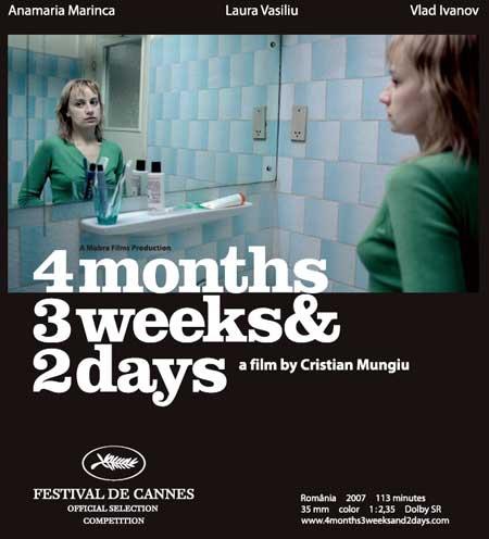 羅馬尼亞導演克里斯汀穆基(Cristian Mungiu)執導的電影《四月三週又兩天》(4 Months, 3 Weeks and 2 Days )在2007年奪下坎城影展60週年時最高榮譽的金棕櫚獎,不僅如此,這部被譽為羅馬尼亞史上的最佳電影,在當時幾乎是橫掃各項國際影展的大獎。也因此,政府當局還授予克里斯汀「羅馬尼亞之星」勳章,這是該國國民的最高榮譽,表揚他的成就,套我們熟悉的用語,稱呼這片為「羅馬尼亞之光」,一點也不為過。